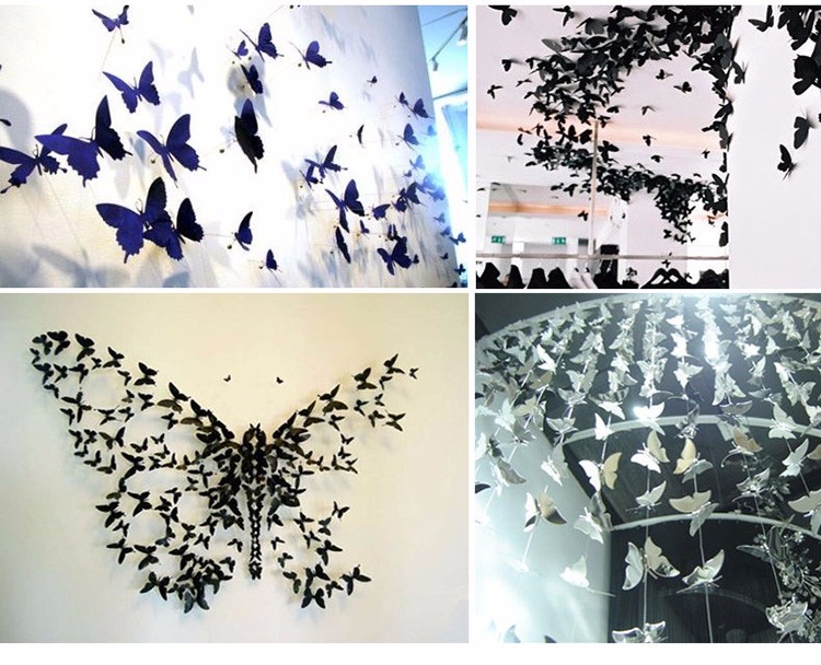 Бабочек могут располагать в форме сердца, их могут «собирать» в стаи таким образом, что они будто бы вылетают из дверного проема и устремляются ввысь, к потолку.