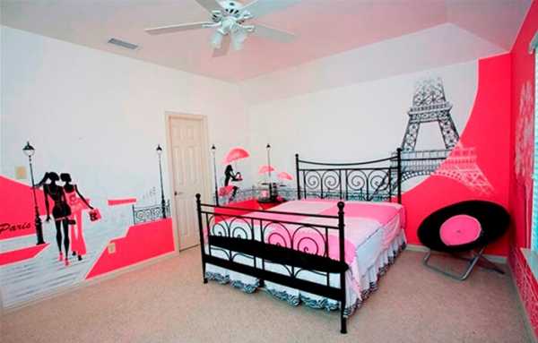 Это, пожалуй, самый болезненный момент для родителей. Им сложно объяснить ребенку, почему нужно выбирать спокойные тона. Найдите альтернативу – используйте фотообои, которые создадут особую атмосферу. Выбрать подходящие из всего многообразия вариантов девочке наверняка удастся.