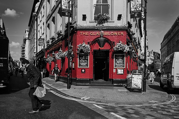 Картина «Пара под красным зонтом в Лондоне. Черно-белая гамма»