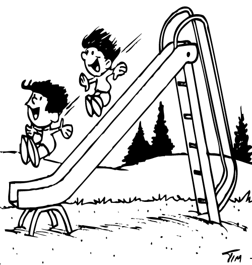 Ключевой объект на детской площадке — это, конечно же, горка. Но также можно добавить песочницу и качели. В первую очередь, вы должны определиться с размерами игровой площади и очертить их карандашом (примерно). Далее наводите контуры элементов, а на третьем этапе уже создайте детальное оконтуривание объектов. Последний этап самый любимый — нужно разрисовать картину.