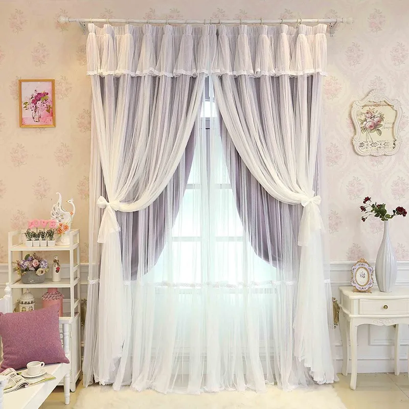 При помощи двойных занавесей регулируется проникновение солнечного света в комнату. Для прозрачного слоя часто используют сетку или органзу.