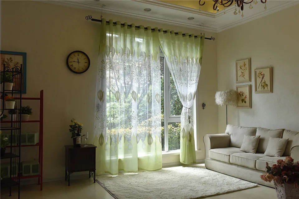 Для комнаты с минимальным количеством естественного освещения подойдёт совсем прозрачная тюль или цветная органза без дополнительного декора.